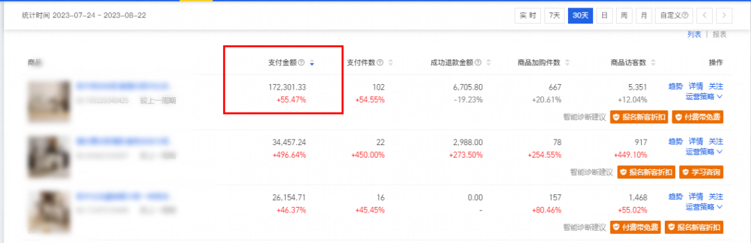 針對同行競店以及競店相同競品進(jìn)行分析,找出競店周期引流詞和成交轉(zhuǎn)化詞,對比市場搜索趨勢詞進(jìn)行添加,每一個周期對比做篩選,關(guān)鍵詞引流訪客周期突破1000,推廣引流下單金額7萬+。”寧思告訴我們。